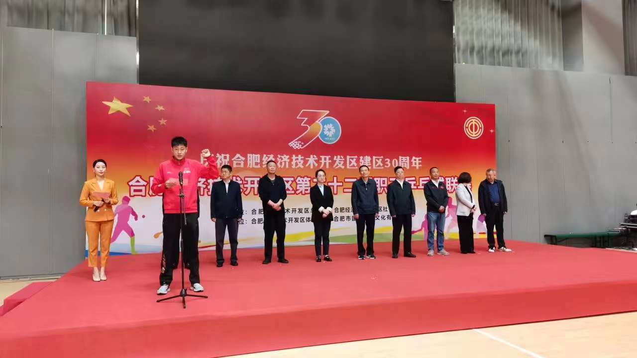 4月14日(rì),由合肥經濟技術開發區總工會、合肥經濟技術開發區社會發展局主辦的“合肥經濟技術開發區建區30周年乒乓球比賽暨合肥經濟技術開發區“第22屆乒乓球聯賽”在南(nán)豔湖全民(mín)健身(shēn)中心·李甯體(tǐ)育園籃球館正式拉開帷幕。合肥市總工會黨組書記、副主席張家祥、合肥經開區工委副書記李大(dà)勇莅臨現場并爲比賽開球。區總工會、社發局、機關黨委等相(xiàng)關負責人出席比賽開幕式。華方計量代表隊水晶林代表運動員(yuán)宣誓,并最終獲得(de)男子單打*。