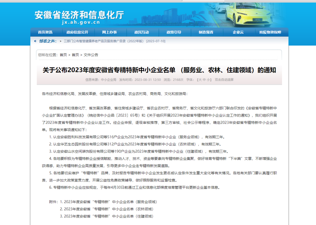 近日(rì),安徽省經濟和信息化廳、省發展改革委、省住房(fáng)城(chéng)鄉建設廳、省農業農村廳、省商務廳、省文化和旅遊廳六部門(mén)聯合行文公布了2023年度安徽省專精特新中小企業名單。華方計量成功入選,這是華方計量今年以來(lái),連續獲批成爲安徽省創新型中小企業、合肥市專精特新中小企業、合肥市服務型制造示範平台後,年度内獲得(de)的又一殊榮。